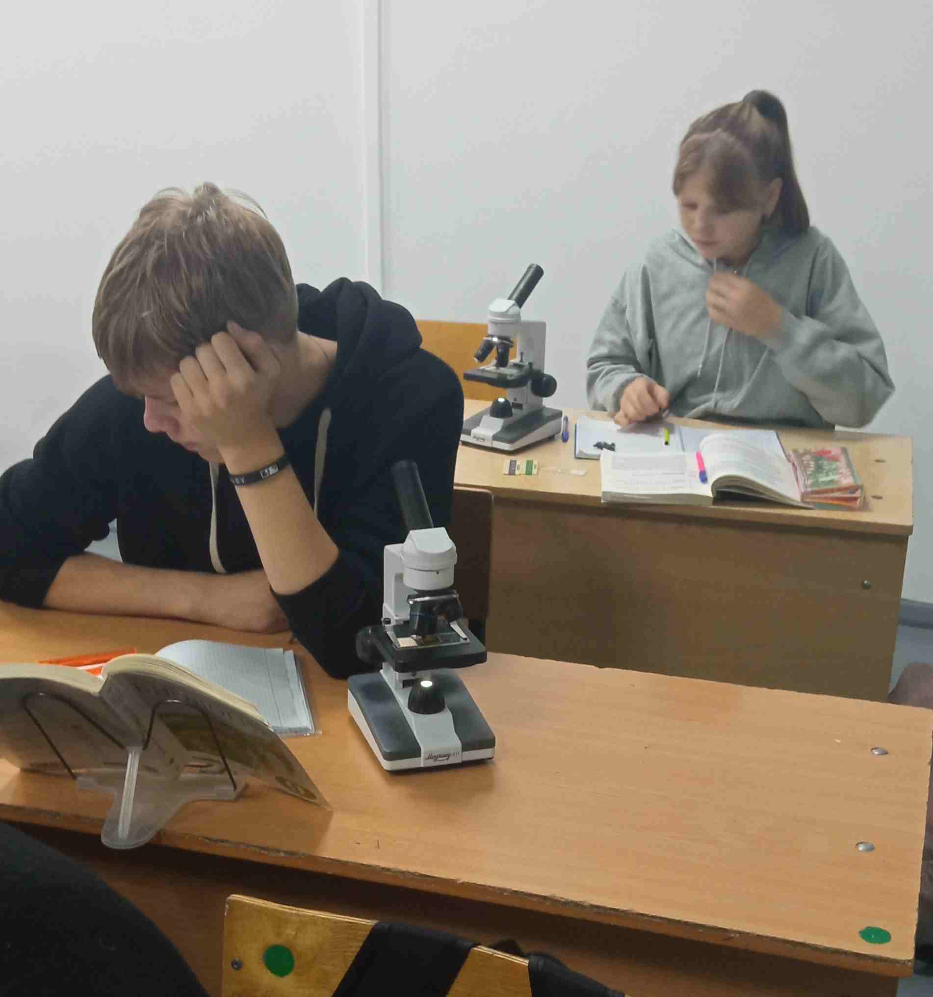 В процессе выполнения лабораторной работы, обучающиеся воспользовались микроскопом Микромед Эврика2,0 МР, рассмотрели готовые микропрепараты различных клеток из набора. В результате выполнения лабораторной работы обучающиеся сделали вывод о строении клеток эукариот и прокариот, выделили существенные различия и сходства.